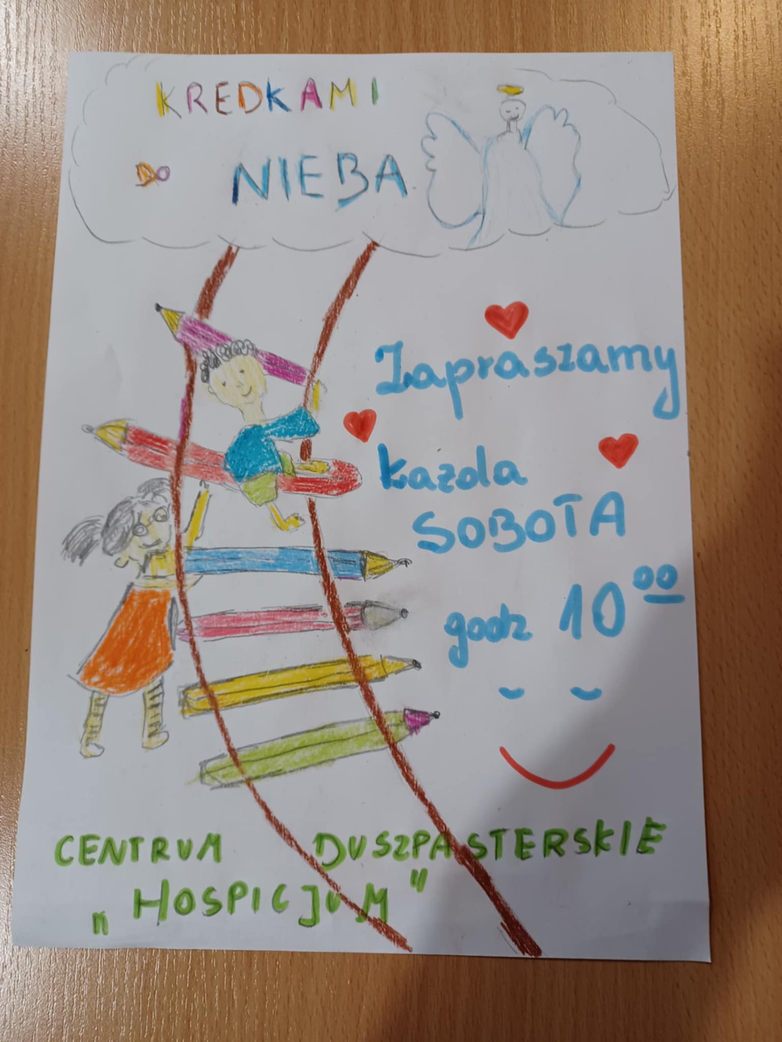 W każdą sobotę o godz. 10.00 zapraszamy dzieci do uczestnictwa w spotkaniach formacyjnych Kredkami do nieba. Spotkania dedykowane są dla dzieci w wieku przedszkolnym i młodszych klas szkól podstawowych. Spotykamy się w Centrum Duszpasterskim ( dawne hospicjum).